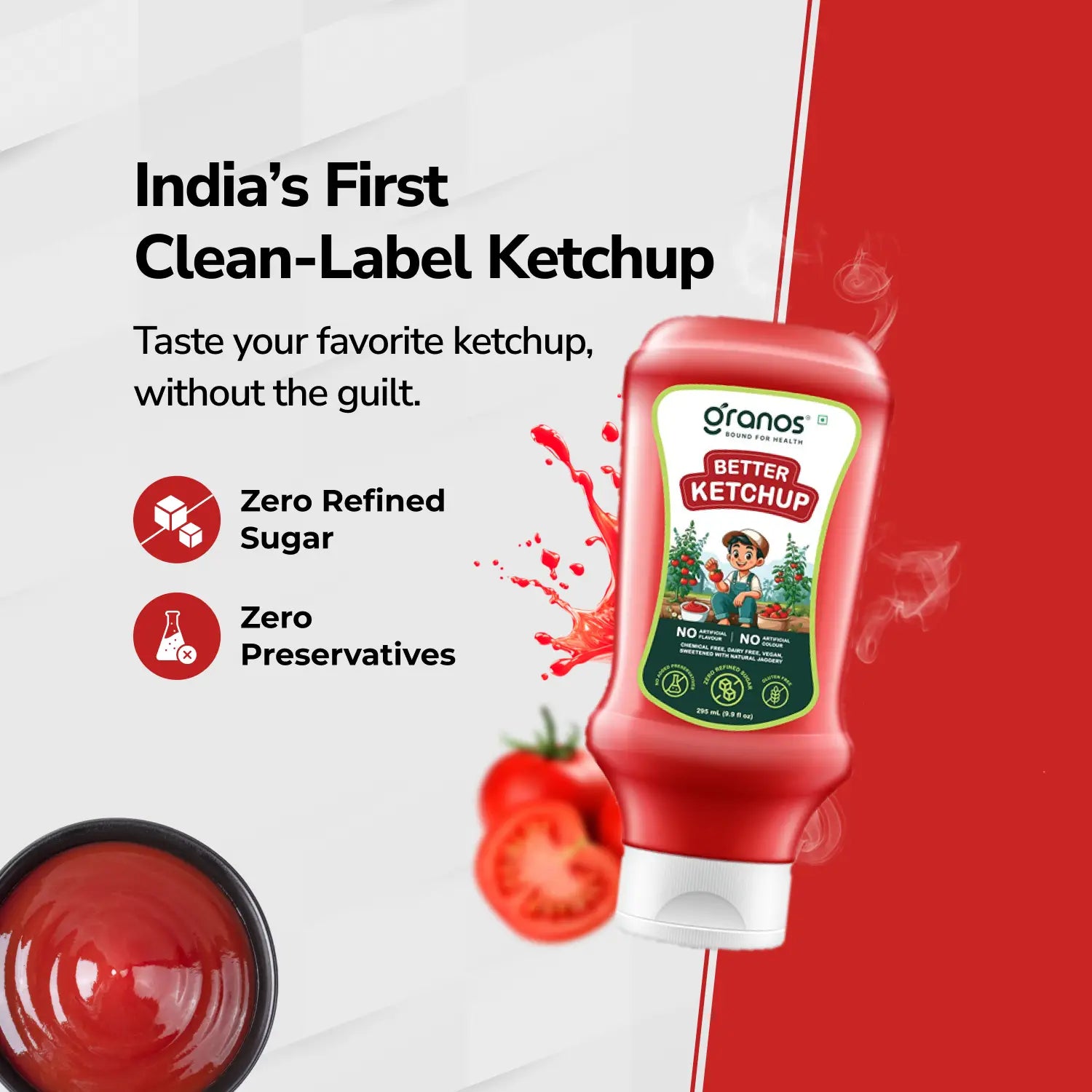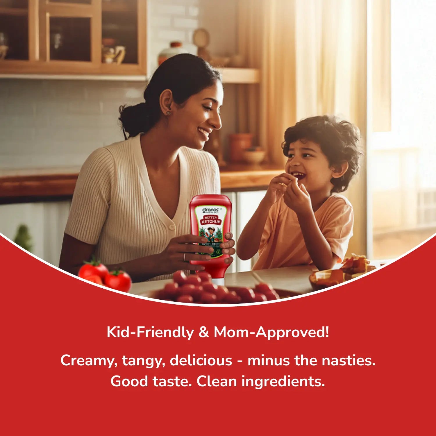 Granos Better Ketchup is made with zero refined sugar, zero preservatives, and zero acidity regulators. It is sweetened with natural jaggery, making it a healthier choice for families, especially kids.