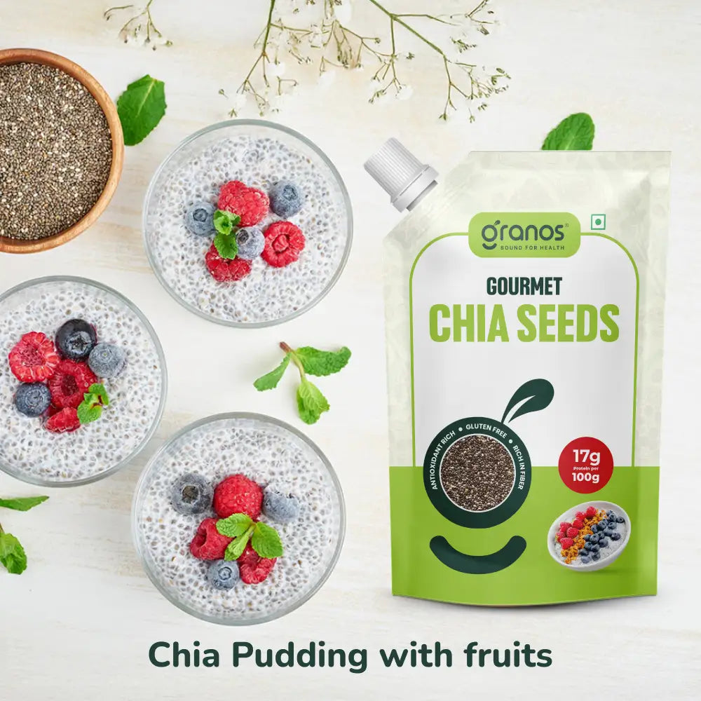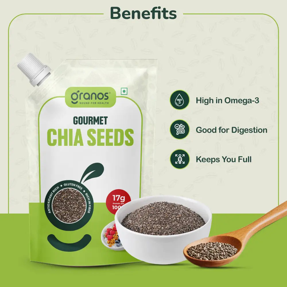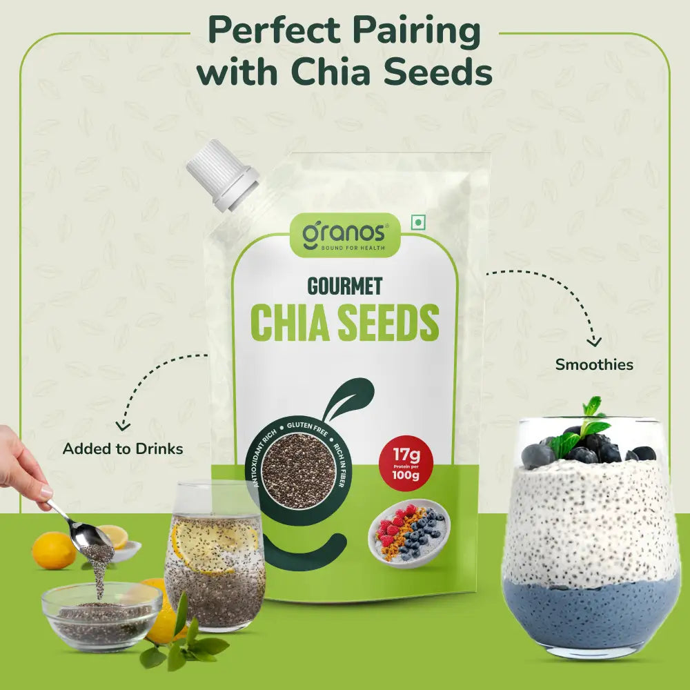 Each serving of chia seeds is gluten-free, making them perfect for those with dietary restrictions, and they boast a whopping 17g of protein per 100g. Plus, chia seeds are known for their ability to absorb up to 10 times their weight in water, helping you feel fuller for longer and assisting with appetite control.