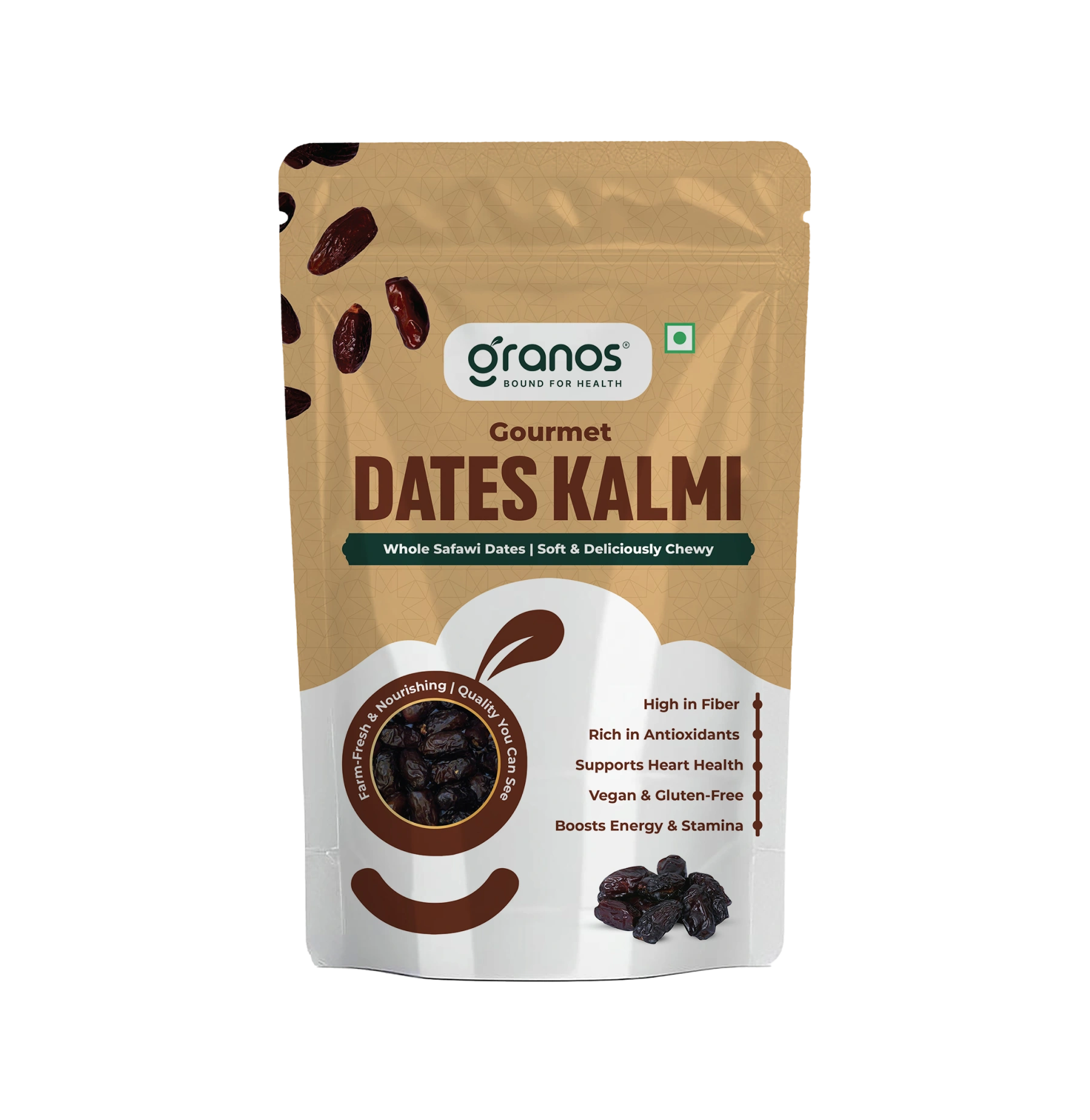 Granos Kalmi Dates are rich in dietary fiber, making them a perfect snack for promoting healthy digestion and providing a feeling of fullness. They are also high in iron, which is essential for the formation of red blood cells and maintaining energy levels. With their natural sweetness, these dates can be a healthier alternative to refined sugars in various recipes.