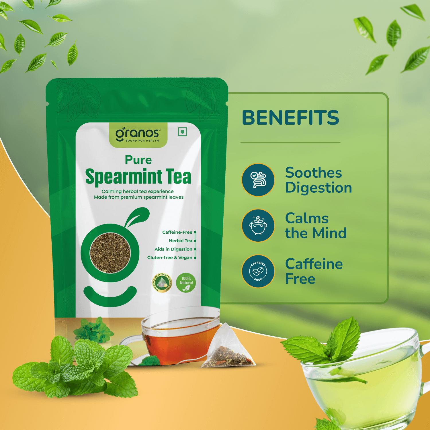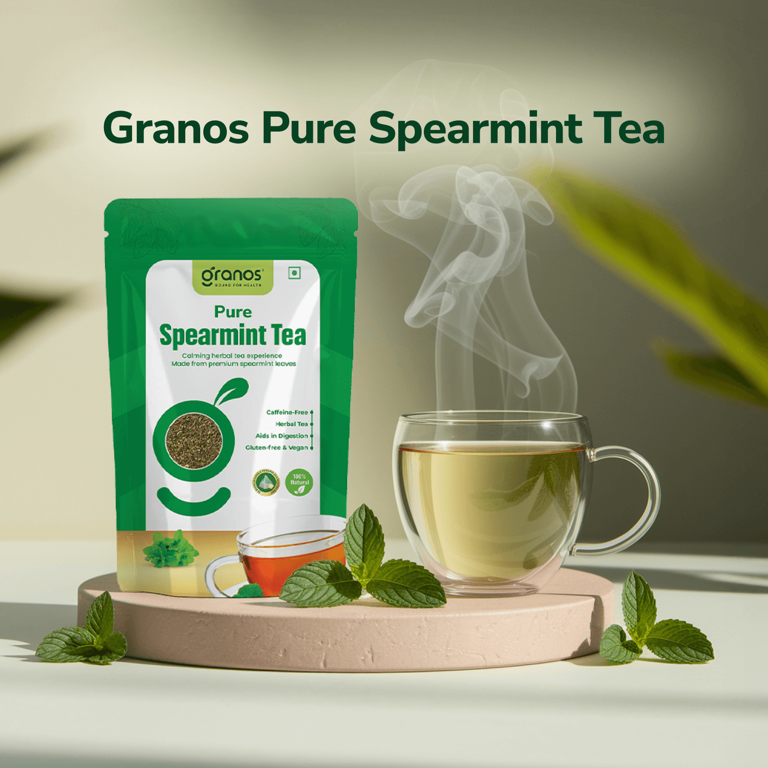 Granos Pure Spearmint Tea Bags offer a refreshing and calming herbal tea experience. Made from premium spearmint leaves, these tea bags provide a natural, caffeine-free infusion that helps with digestion, stress relief, and relaxation. Packed in eco-friendly, easy-to-use tea bags, it’s a convenient way to enjoy pure spearmint tea at any time.