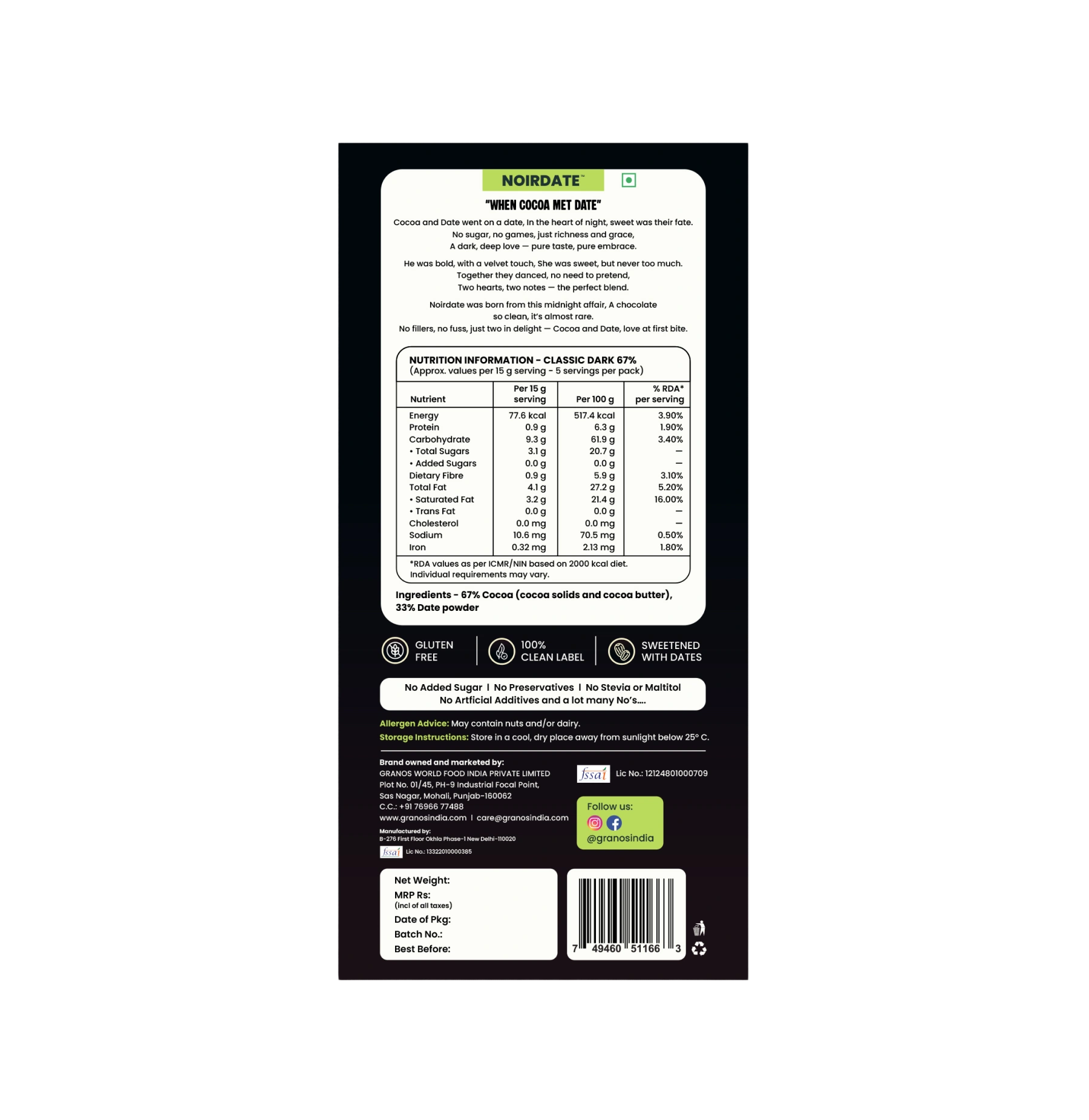 Bold, rich, and indulgent, our 67% Dark Chocolate is crafted with premium cocoa and sweetened naturally with date sugar. It’s a healthier twist on indulgence with antioxidants in every bite.